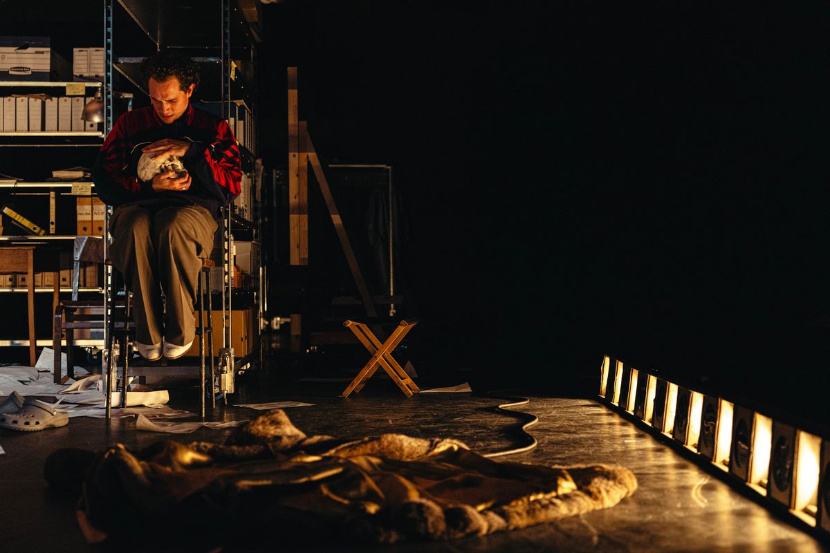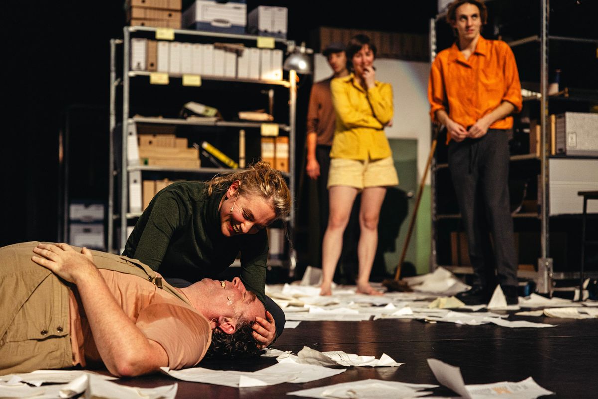 Voor hun nieuwe voorstelling vertrekt WOLF WOLF niet vanuit repertoire, maar vanuit de plek waar het repertoire wordt bewaard. Een fysieke, maar kwetsbare ruimte. Dozen worden leeggehaald, kostuums worden verkocht, decorstukken gaan naar het containerpark. Alleen de theaterteksten en foto’s verhuizen naar een nieuwe, digitale ruimte.
