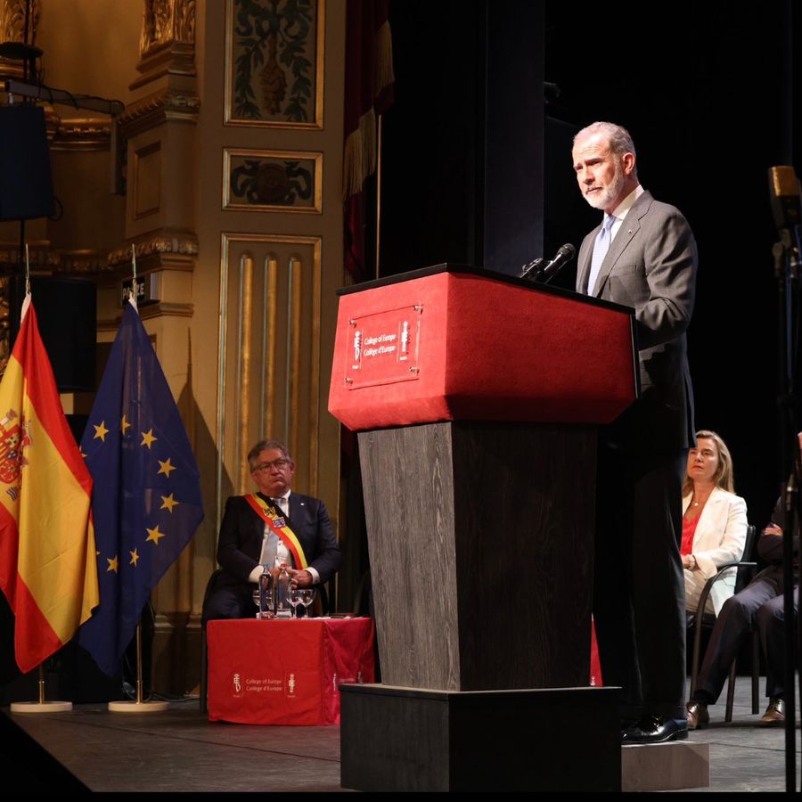 Het was even slikken, vrijdagnamiddag, toen ik mijn badge moest tonen aan een veiligheidsagent voor ik de Stadsschouwburg in mocht. De Spaanse koning Felipe VI kwam de slotceremonie toespreken van het Europacollege, en het decor van mijn werkplek leek plots het toneel van de beste Bondfilm sinds Never Say Never Again.
